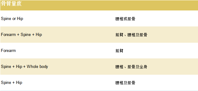 骨質量度評估是透過雙X光吸收測量儀量度腰椎、股骨及腕關節的骨密度,來評估病人是否患有骨質疏鬆症。任何患有骨質疏鬆的人士比一般人更容易骨折,此評估亦為處於更年期的女性判斷是否需要進行荷爾蒙補充治療。早期診斷可以及時預防進一步的骨質惡化及相關的疾病,並進行適當的治療。