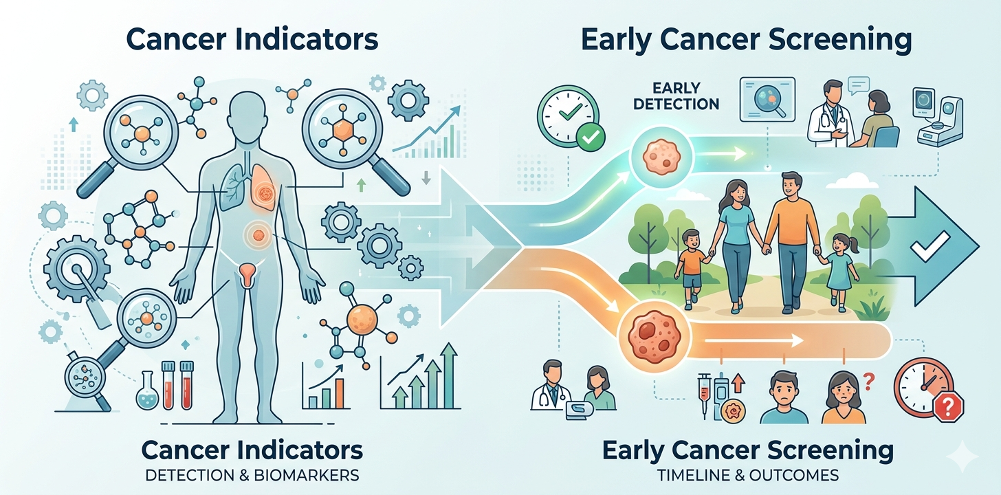 癌症指標(Tumor Markers)是癌細胞或身體對癌症反應產生的蛋白質或抗原,常見類型包括甲種胚胎蛋白(肝癌)、癌抗原19.9(胰臟癌)和癌胚抗原(腸癌)。 醫生透過抽血檢測這些指標濃度,若超出正常範圍,可能提示癌症風險,但無法單獨確診。