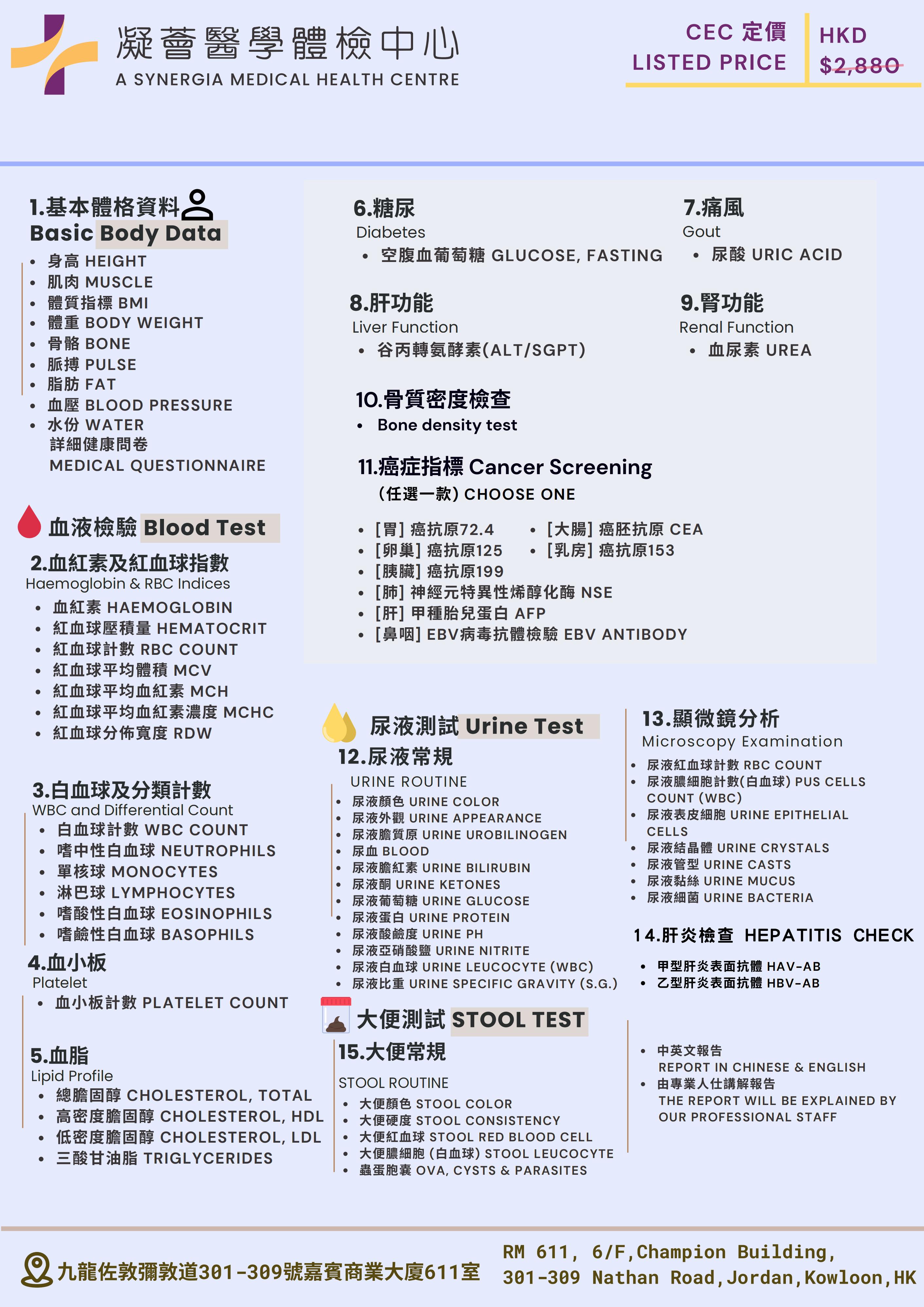 CEC-基本身體檢查計劃(周年體檢方案)